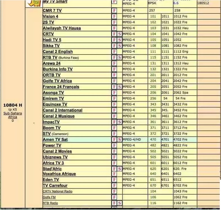BIAFRA TELEVISION CHAMPION TV TPA1 TPA2 EVANGEL TV YAOUNDE CANAL2 SOCCER HD AD-HOC2 and more