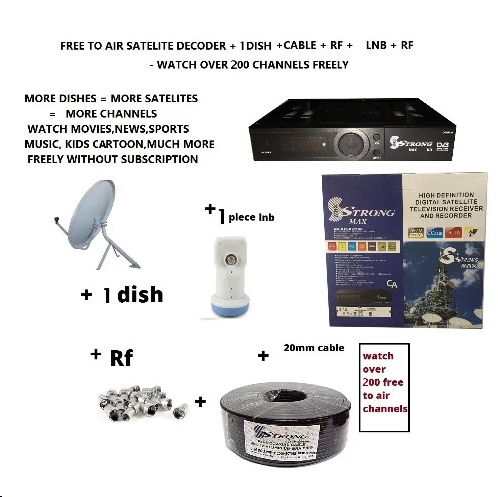Product 13 – STRONG Technologies Free To Air Decoder SRT 4950 Complete Set With 1 Dish cable lnb rf
