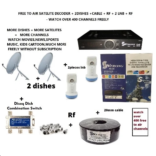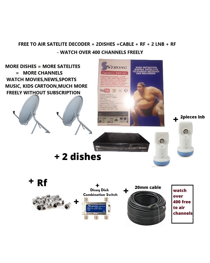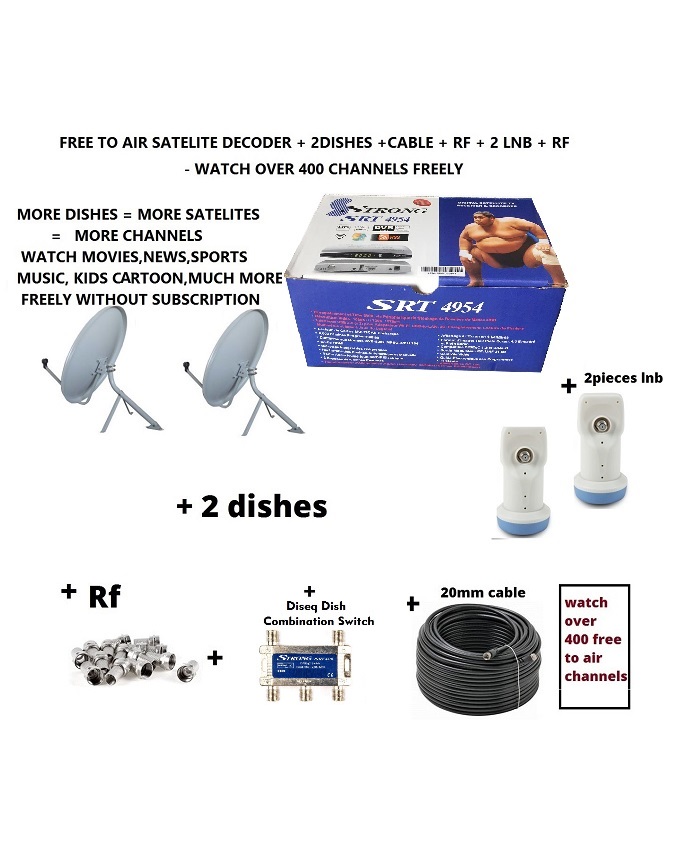Product 8 – STRONG SRT 4954 Free To Air Satelite Tv HD Decoder STRONG Technologies Free To Air Decoder SRT 4954 Complete Set With 2 Dish cable 2 lnb rf DISEQ SWITCH