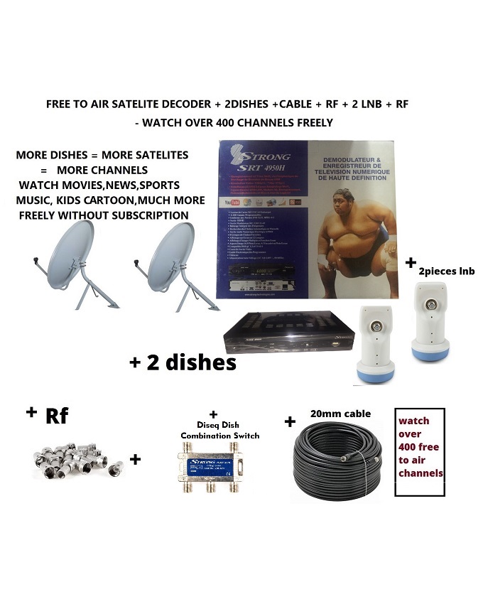 PRODUCT 14 -STRONG Technologies Free To Air Decoder SRT 4950H Complete Set With 2 Dishes CABLE 2 LNB RF DISEQ SWITCH